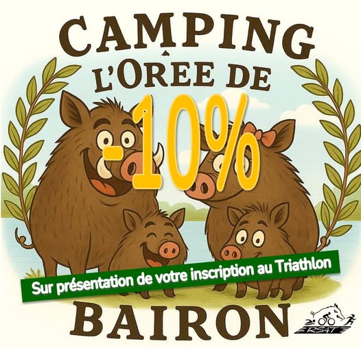 Sur présentation de votre inscription au Triathlon, le Camping L’Orée de Bairon vous offre 10% de remise sur votre séjour.