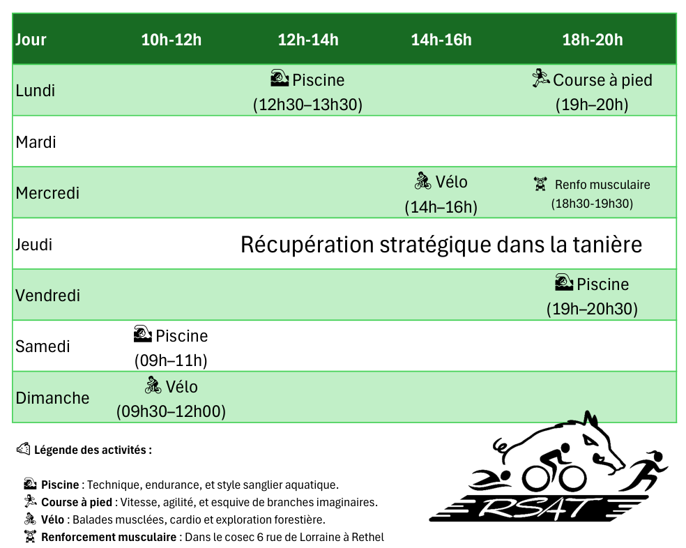 Le RSAT propose désormais des séances de renforcement musculaire pour développer force, stabilité et tonicité dans une ambiance conviviale… et légèrement sauvage, comme on l’aime chez les sangliers