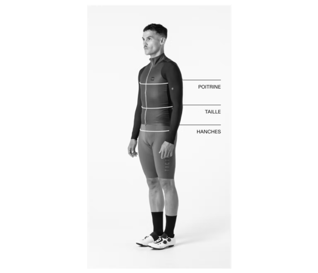 Si vous vous trouvez à la limite entre deux tailles, optez pour la taille plus petite pour un ajustement plus serré ou pour la taille plus grande pour un ajustement plus ample. Si vos mesures de poitrine et de taille correspondent à des tailles recommandées différentes, choisissez la taille qui correspond à votre mesure de poitrine.